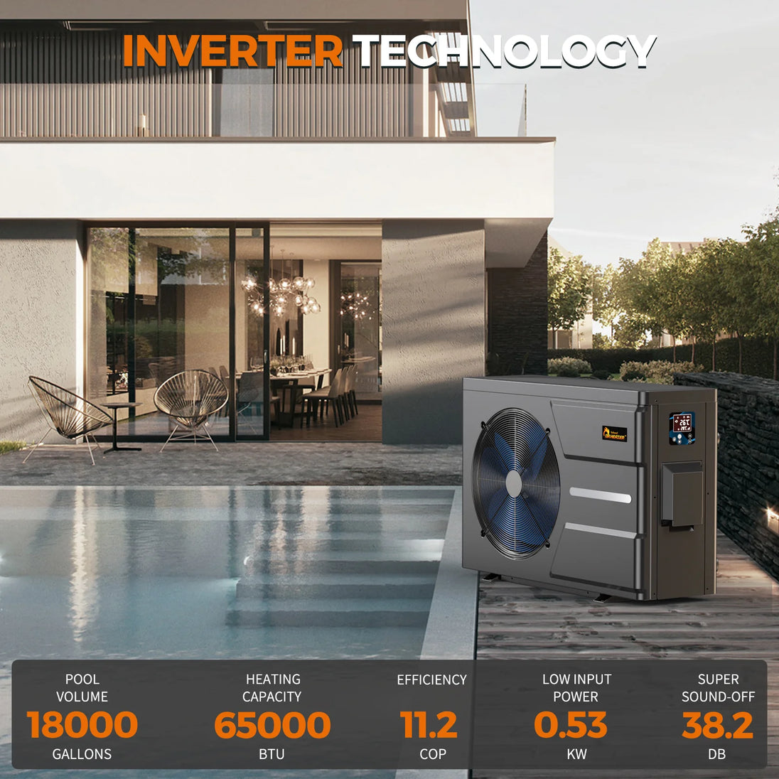 Efficient, quiet, and smart - the DR. Infrared DR-650HP 65,000 BTU Full Inverter Pool Heat Pump is built for year-round performance in both in-ground and above-ground pools. With advanced DC inverter technology, built-in WiFi app control, and a weather-resistant design, this unit provides reliable heating while keeping energy use to a minimum. Ideal for pools up to 18,000 gallons, it delivers the power you need with smart scheduling, low vibration, and ultra-quiet operation — even in coastal or challenging climates.