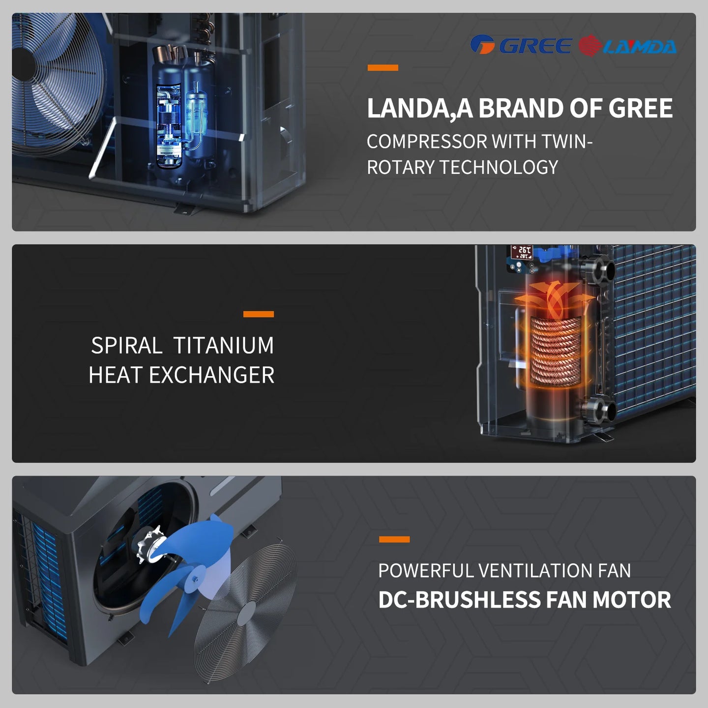 Full DC Inverter Compressor & Fan Motor – Adjusts output from 20% to 100% for optimal efficiency